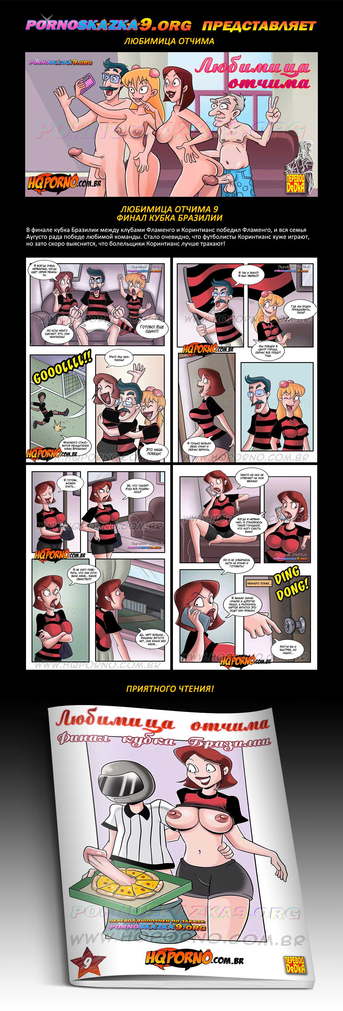 Порно комикс «Любимица отчима. Часть 9. Финал кубка Бразилии.» В финале кубка Бразилии между клубами Фламенго и Коринтианс победил Фламенго, и вся семья Аугусто рада победе любимой команды. Стало очевидно, что футболисты Коринтианс хуже играют, но зато скоро выяснится, что болельщики Коринтианс лучше трахают!